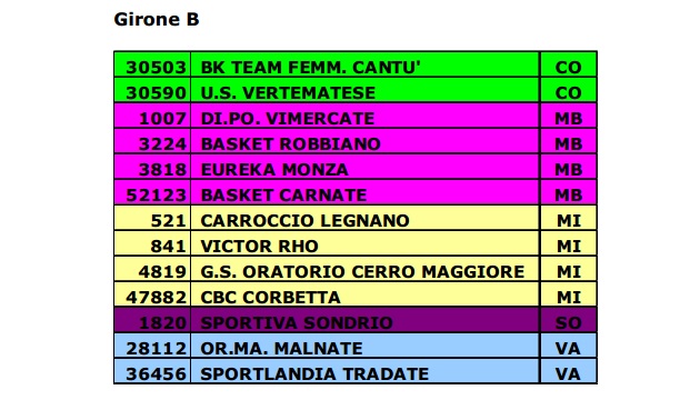 Rispetto alla scorsa stagione, alcune squadre non ci sono più: Gavirate promossa, Garbagnate e Bresso passate nel Girone A, Cantù retrocessa dalla serie B, Carnate e Corbetta promosse dalla Promozione, e le novità Tradate e Victor Rho!